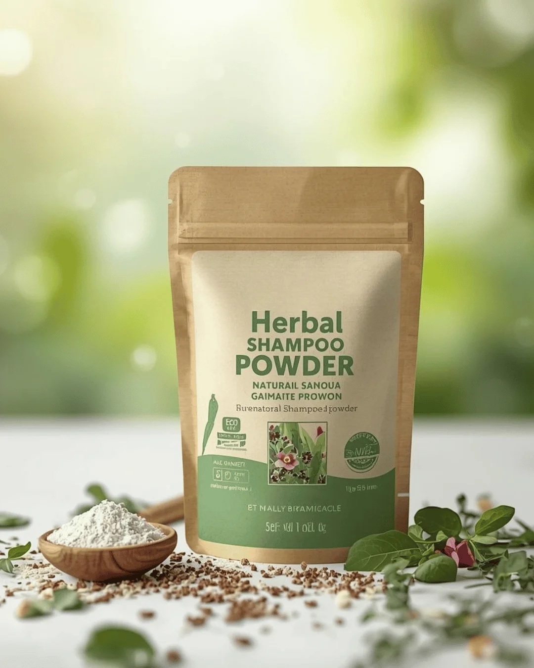 A herbal shampoo powder that naturally cleans hair, leaving it soft, fresh, and full of life.
